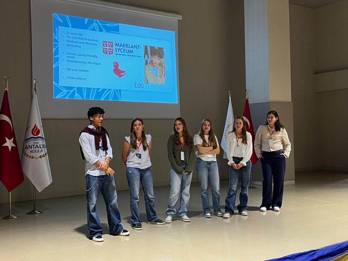 In november bezochten 6 leerlingen en 2 docenten van het Maerlant onze partnerschool in Antalya, Turkije. Het bezoek was onderdeel van ons Erasmus Green Schools for Green Europe project waarbij wij samenwerken met scholen en andere partners in Europa om meer duurzaamheid in het onderwijs te krijgen. De leerlingen werden geselecteerd op basis van hun brieven en hun betrokkenheid bij het project. Eenmaal in Turkije ontmoetten ze leerlingen van onze partnerscholen uit Spanje en Italië. Samen gingen ze aan de slag met activiteiten die de vakken Kunst en Lichamelijk Opvoeding met duurzaamheid combineren. Hier een kleine indruk.